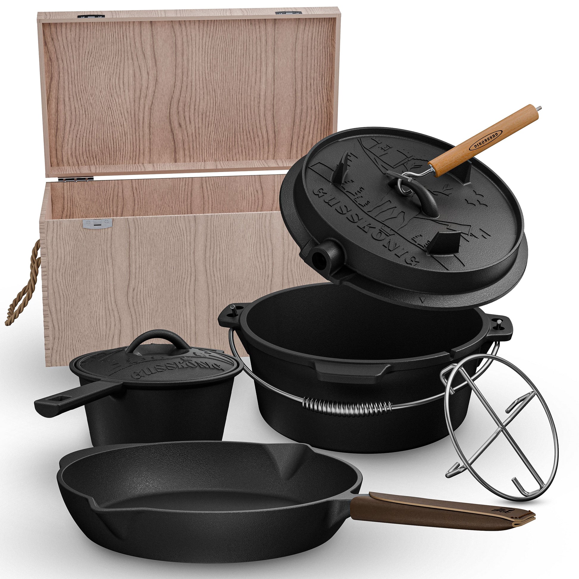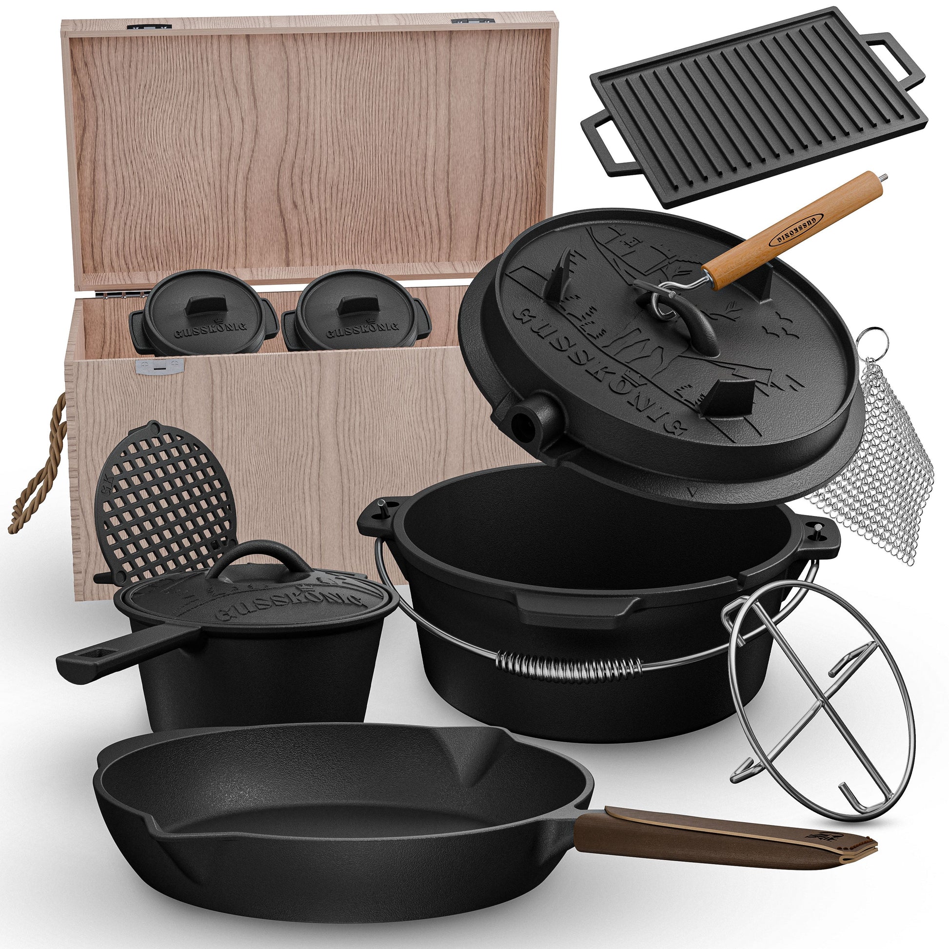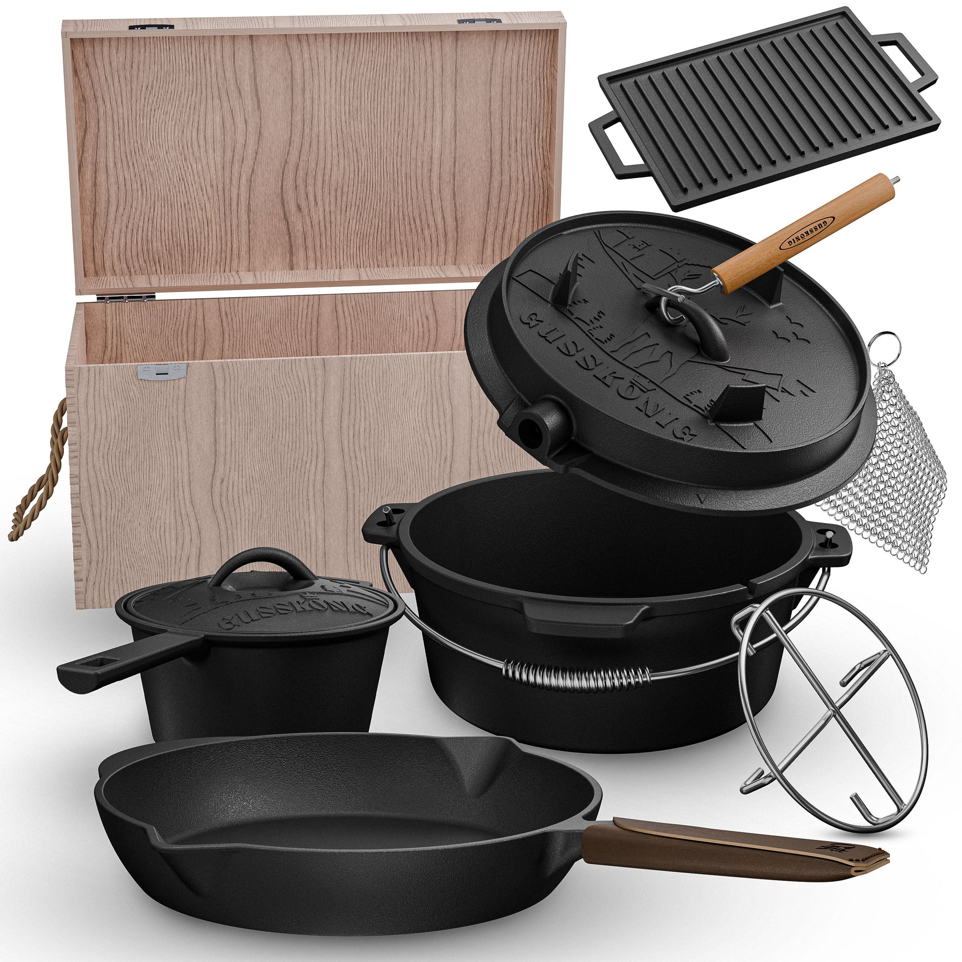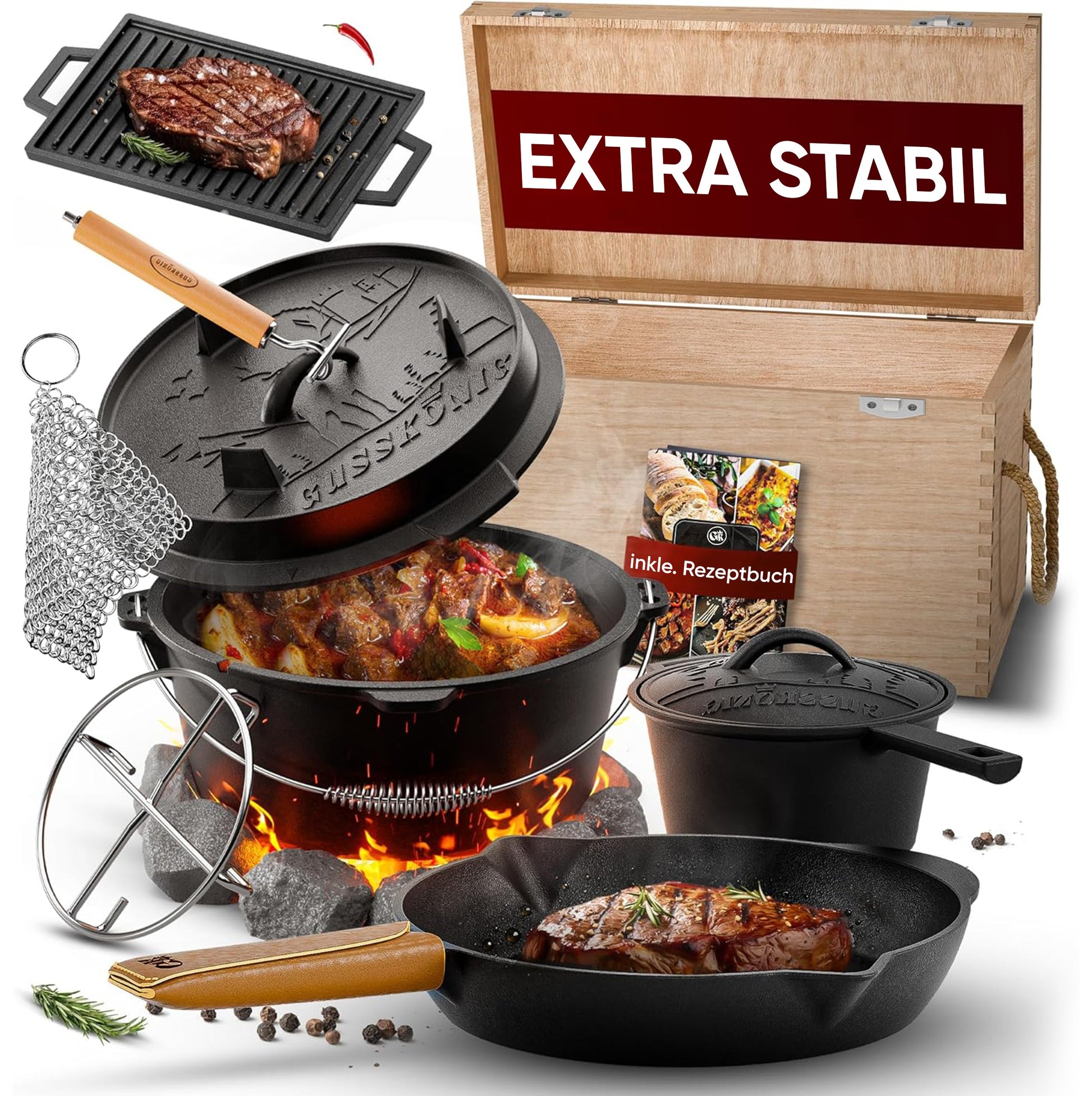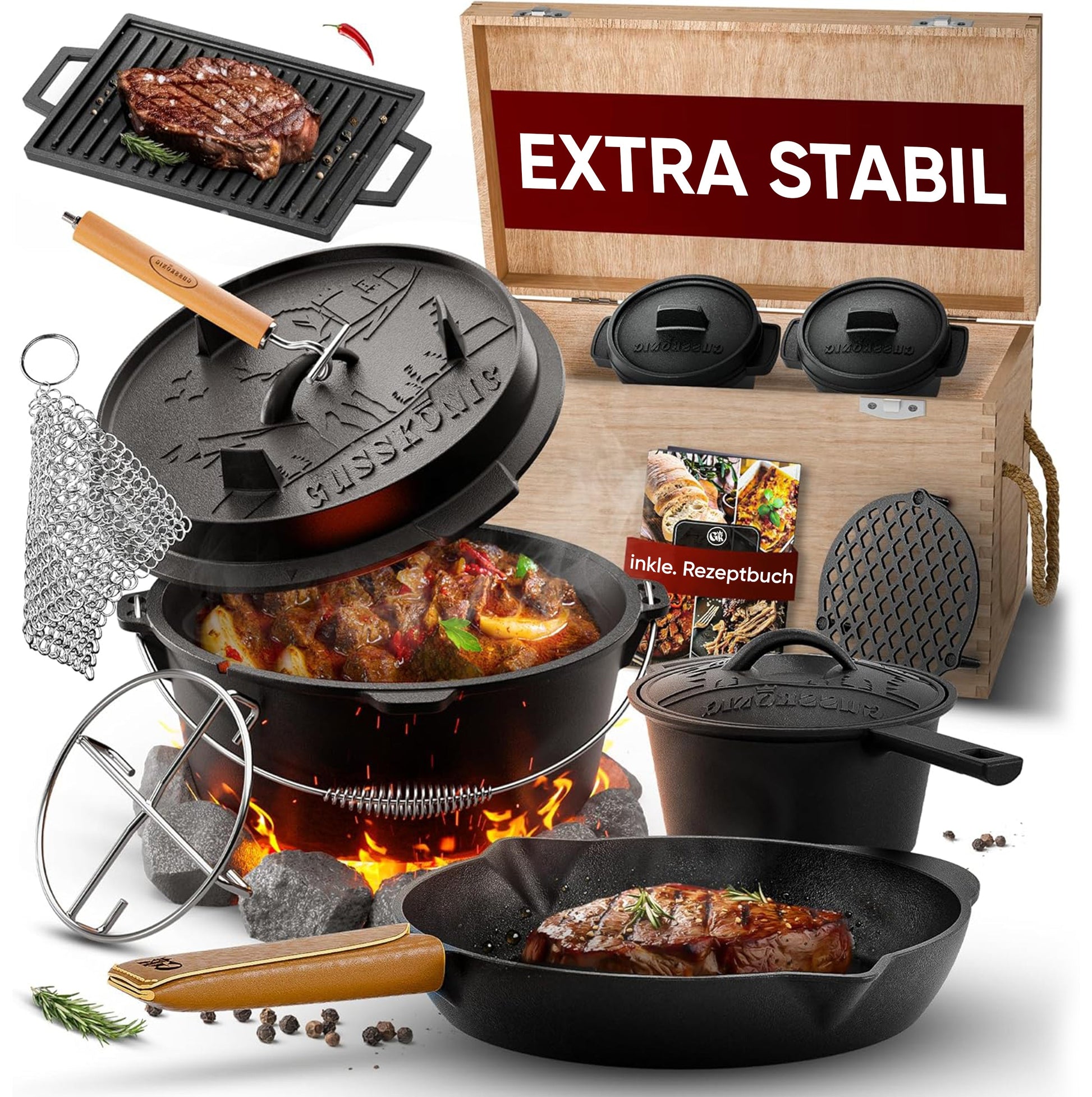 Antwort: Ja, die Gusseisenpfannen sind für Gas-, Holzkohle- und Elektrogrills geeignet.