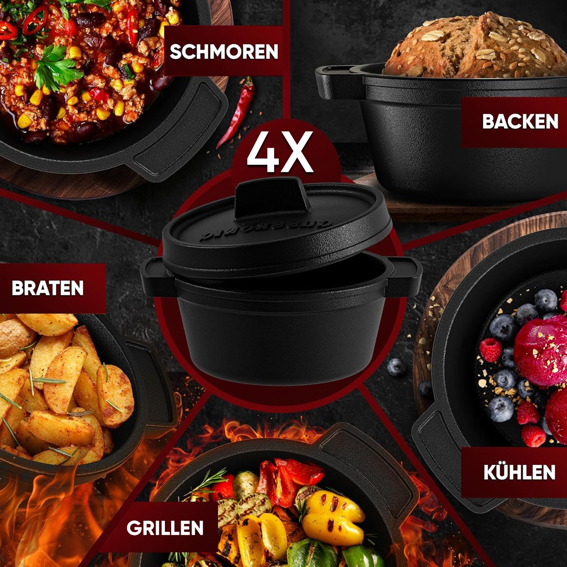 Antwort: Ja, die Gusseisenpfannen sind fĂŒr Gas-, Holzkohle- und Elektrogrills geeignet.